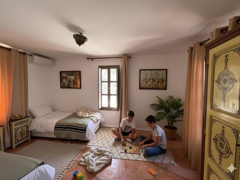 Nos villas familiales ( Dar Tamou et Dar Lala) sont conçues pour accueillir vos proches tout en préservant l’intimité de chacun. Avec des espaces de vie spacieux et des terrasses ensoleillées, ces villas sont le cadre rêvé pour partager des moments inoubliables. Que ce soit pour un repas en famille autour de la cuisine marocaine ou pour se retrouver autour de jeux au bord de la piscine, chaque instant sera précieux.